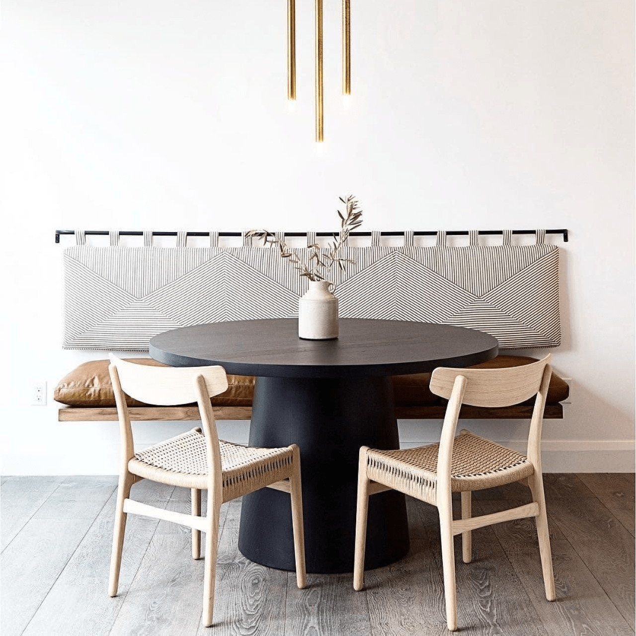 When creating our current dining nook, I was really inspired by these two images above and knew that I wanted to create a mixture of nook with a bench against the wall as well as a number of chairs that were each slightly different from each other. It makes each chair look like a sculpture in the room.