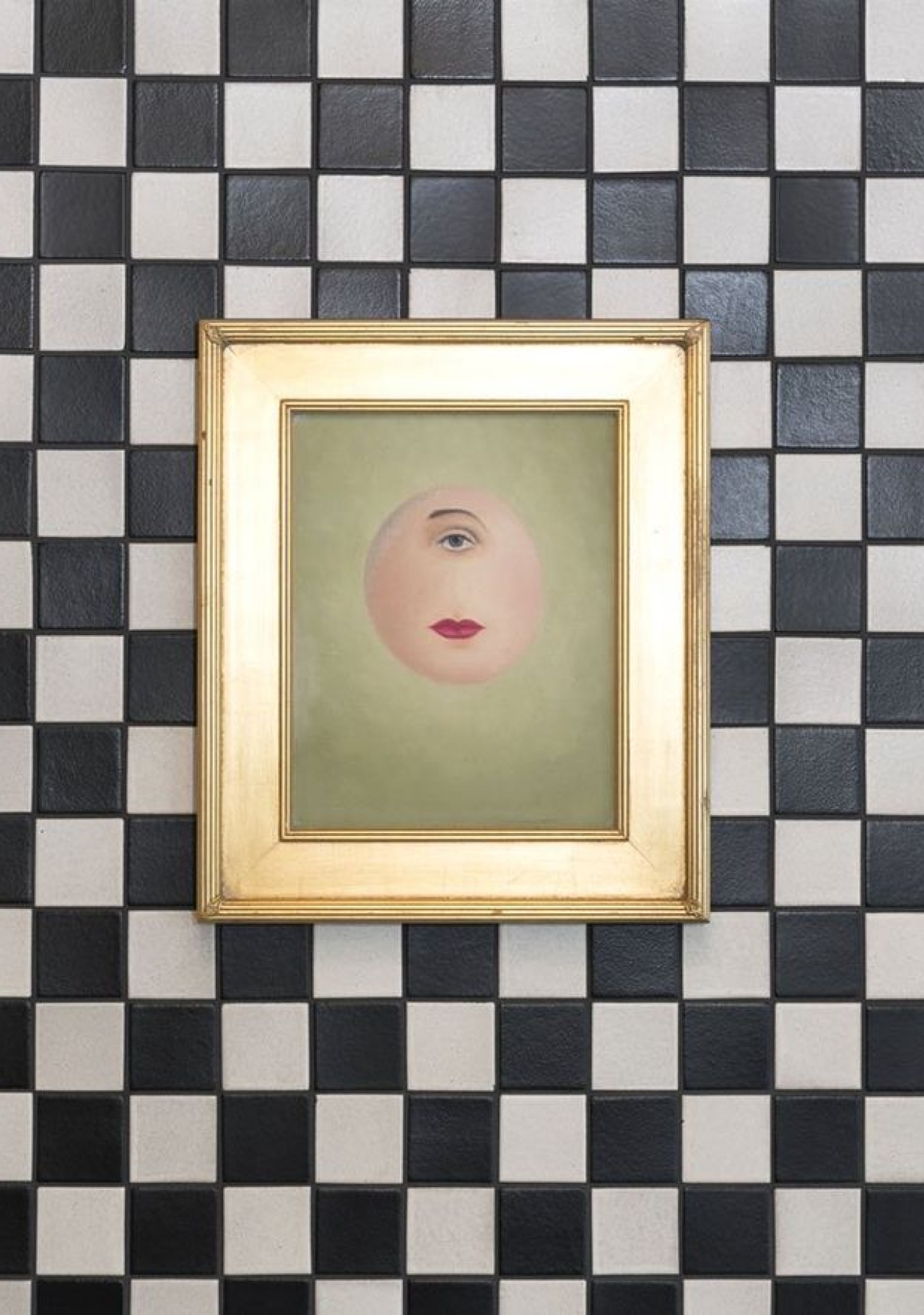 Know how to break the rules: Kelly Wearstler's small painting in the rooftop bar of San Francisco's Proper Hotel is impactful because it is set against small tiles.