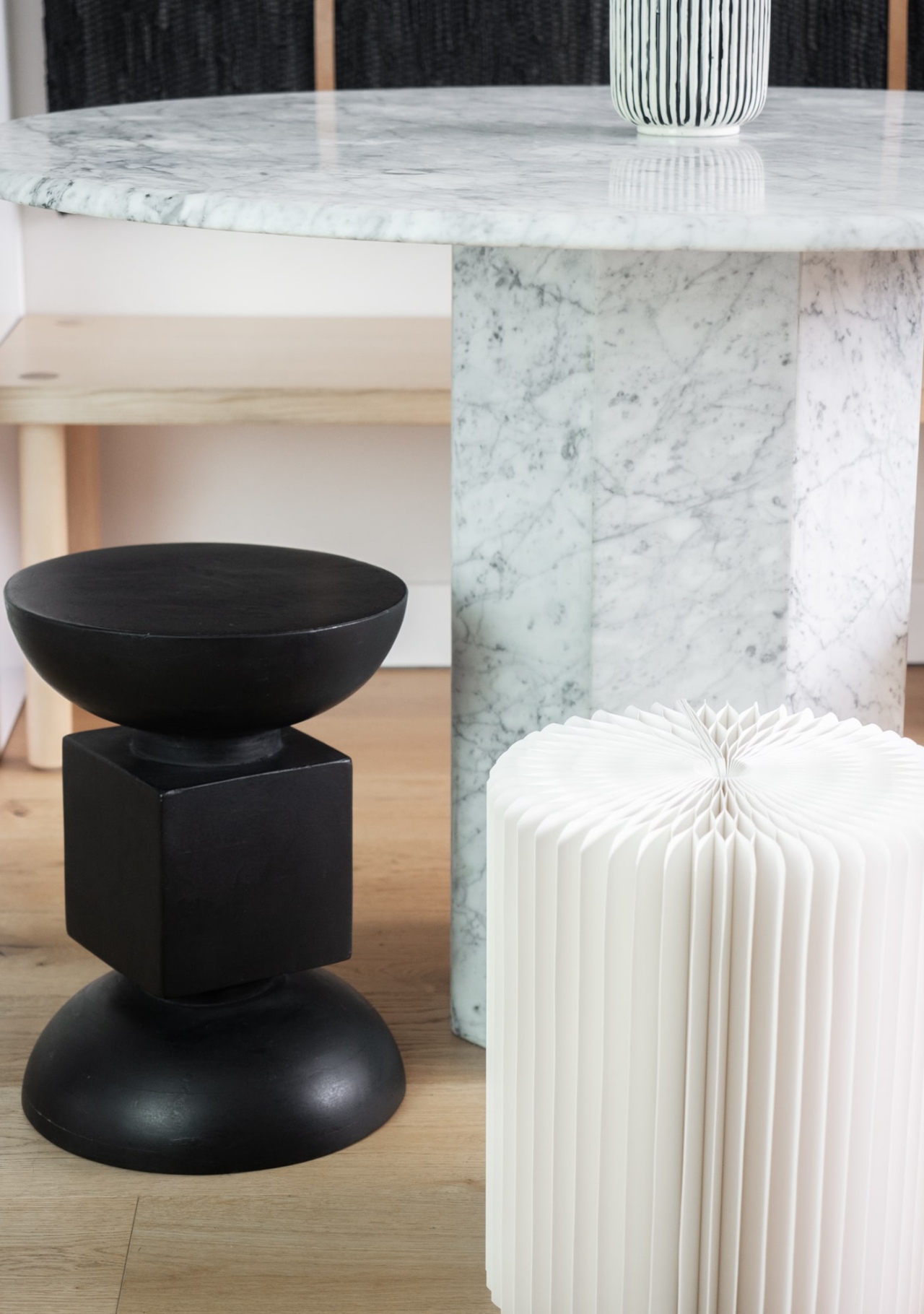 I’m a big fan of round tables for numerous reasons. One of the reasons I love them so much is because they are amazing at fostering a sense of community. Cafés often opt for round tables, because even when you’re sitting by yourself, it doesn’t necessarily feel awkward as there are no empty sides. When it comes to our table, whether Timothy and I are sitting at it alone or with one or more friends, we have found that there is a tangible sense of community that often fosters conversation and intimacy. So much so, that although the much more comfortable lounge area is less than 2 meters away, our friends tend to linger at the table until the end of the night. Another reason I love round tables is that it can be easier to fit them into small spaces, especially because they look just as good with only two chairs. Obviously this depends on the size of the table.