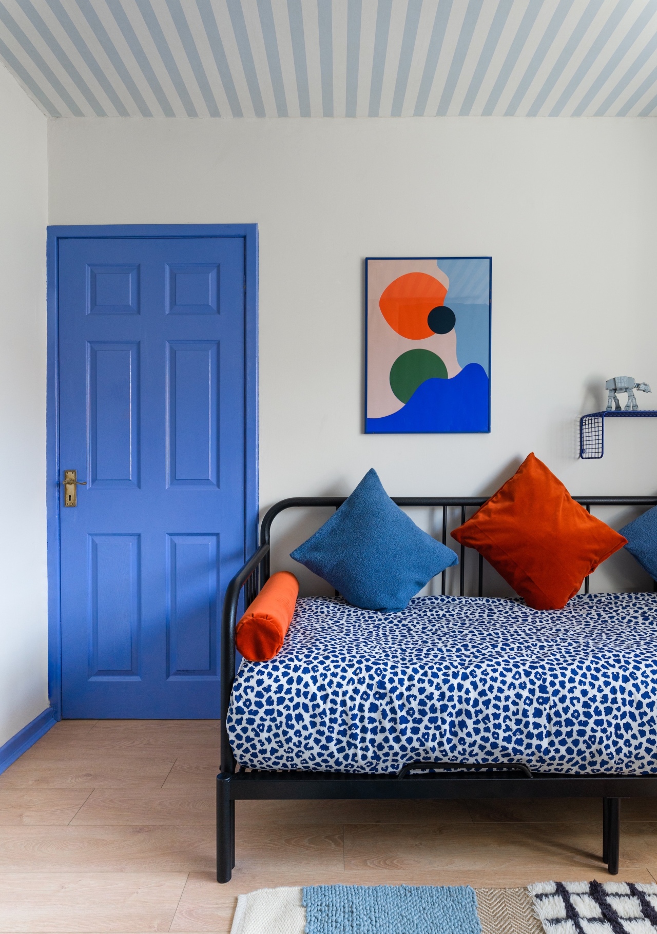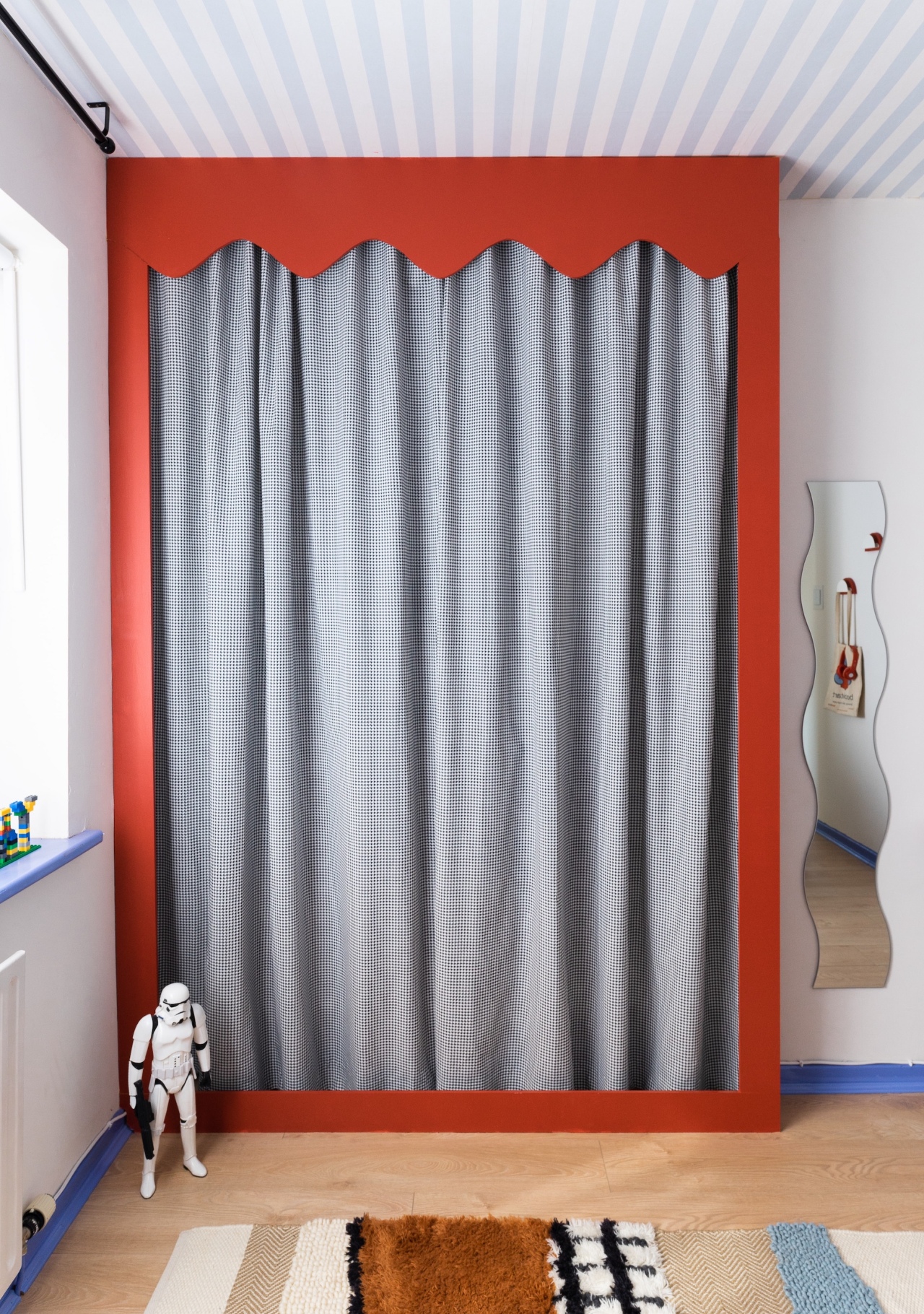 Harry had requested the use of his favourite colours, blue and red, in the room. He wanted it to reflect his main interests, Marvel and Star Wars, and be spacious enough for his favourite activities: gaming, reading, TikTok and Lego. My aim was to create a space that he would be able to grow with, playfully embracing his still childlike spirit yet sophisticated enough to be suitable for his later years as a teenager.