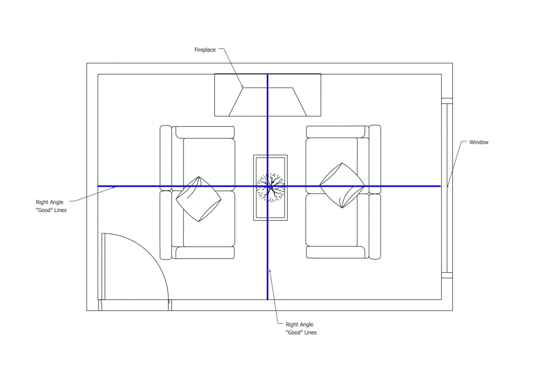 Your key architectural features such as windows, fireplaces and doors tend to be on the right-angle lines. Your furniture should support and enhance these architectural features.
