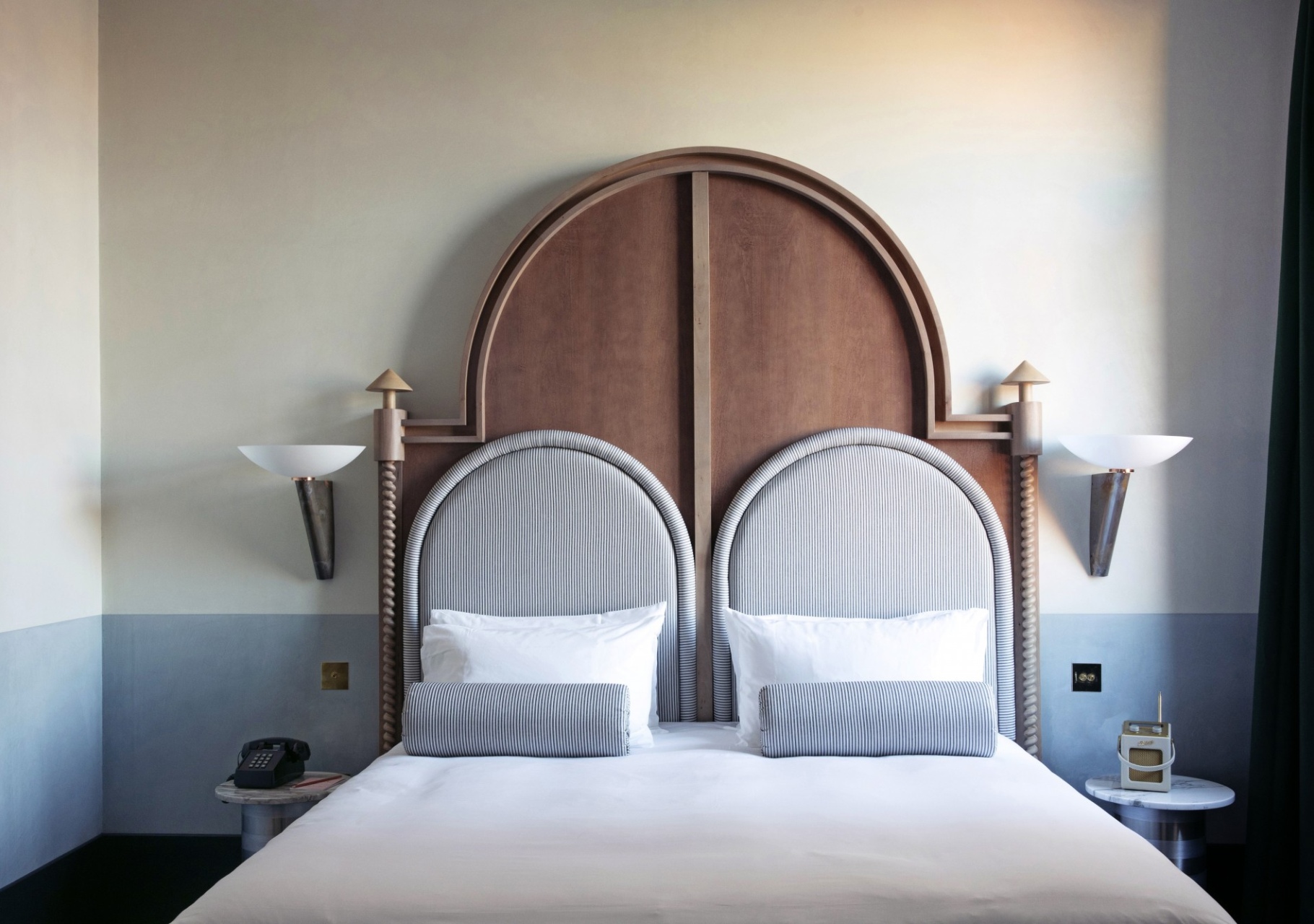 Dorothée Meilichzon is the queen of symmetric headboards (pictured here: Henrietta Hotel London)Palazzo Experimental Venice (featuring Dorothée Meilichzon's signature symmetric headboard)