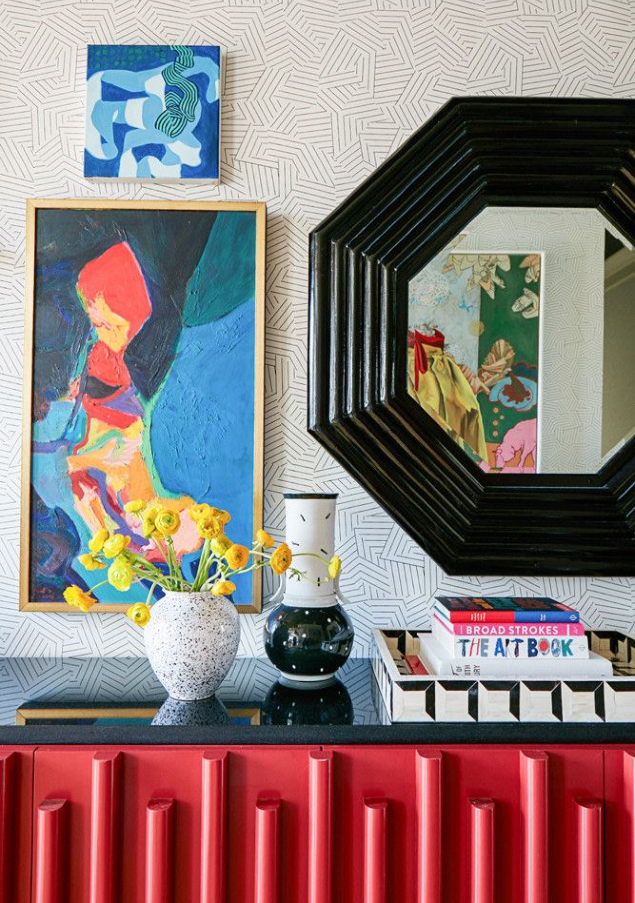 A common example of ‘out of proportion’ that I often see in people’s homes is the size of their artwork or mirror above the fireplace or large furniture piece, which tends to be way too small. This could be fixed by having multiple smaller pieces that create one big whole instead.