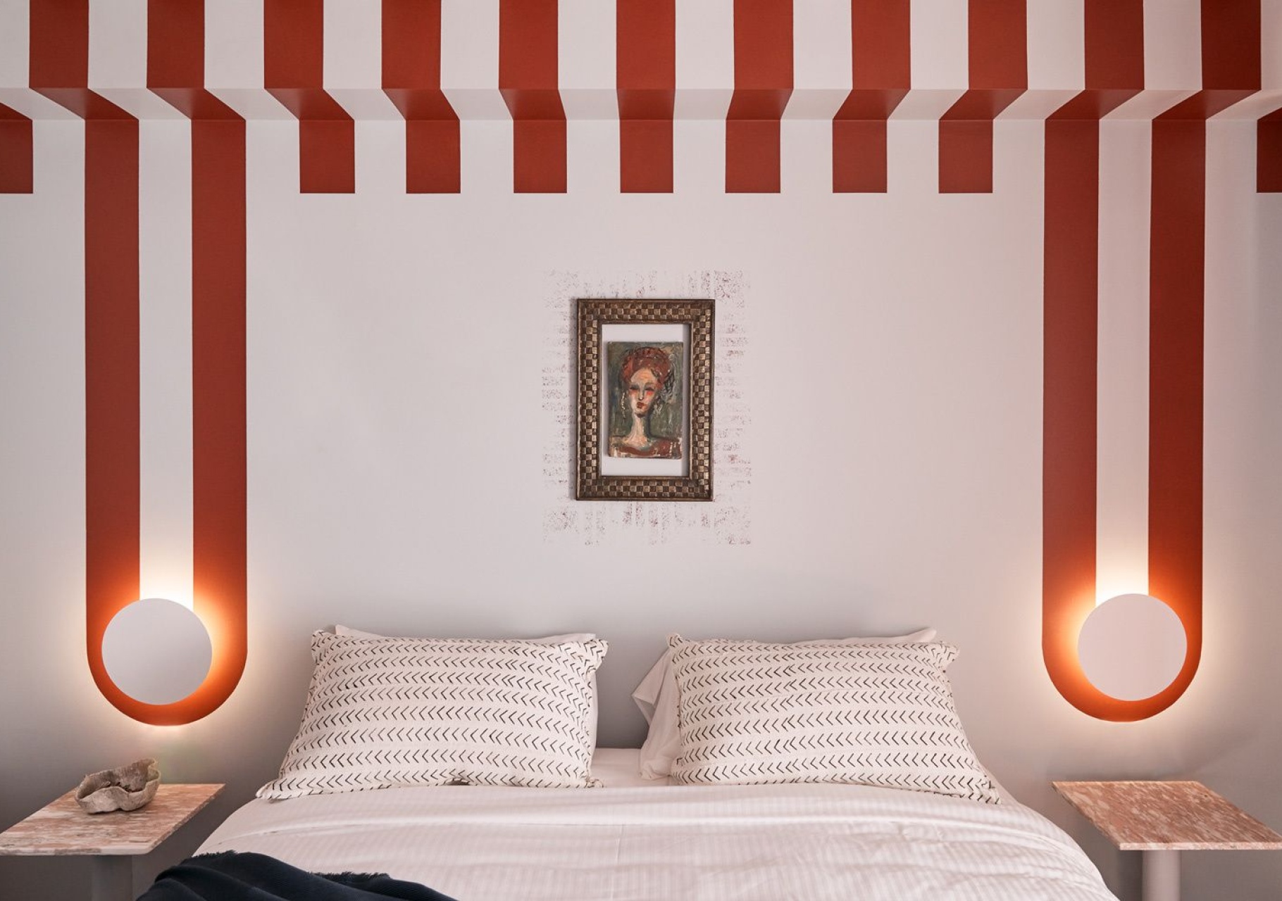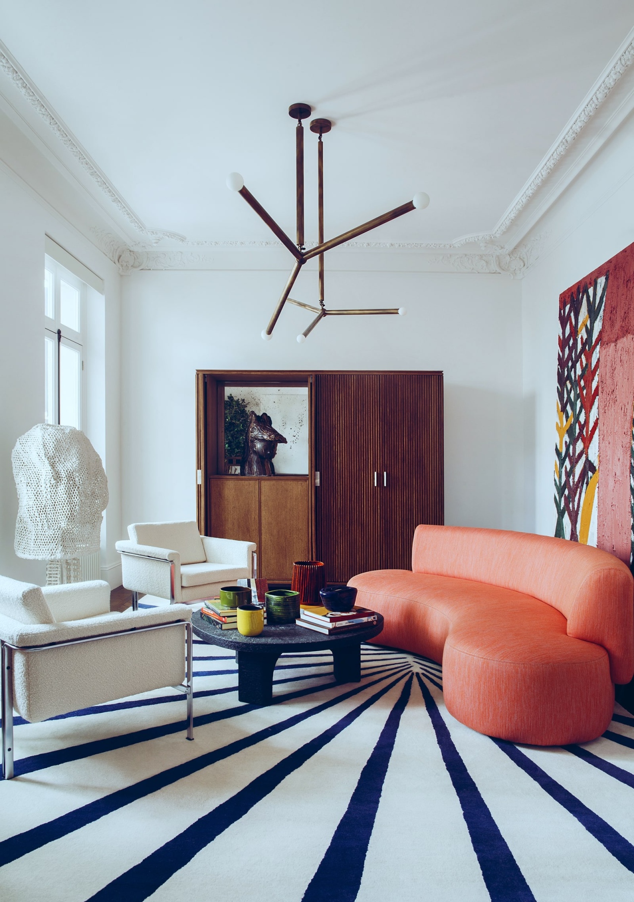 This takes attention away from the rest of the room. A large dark picture, pictures hung low in the middle of the space or a bold rug below draw the focus of the eyes to themselves, rather than to how low the ceiling is or where the corners of the wall are. The walls become blurry and the room subsequently seems larger.